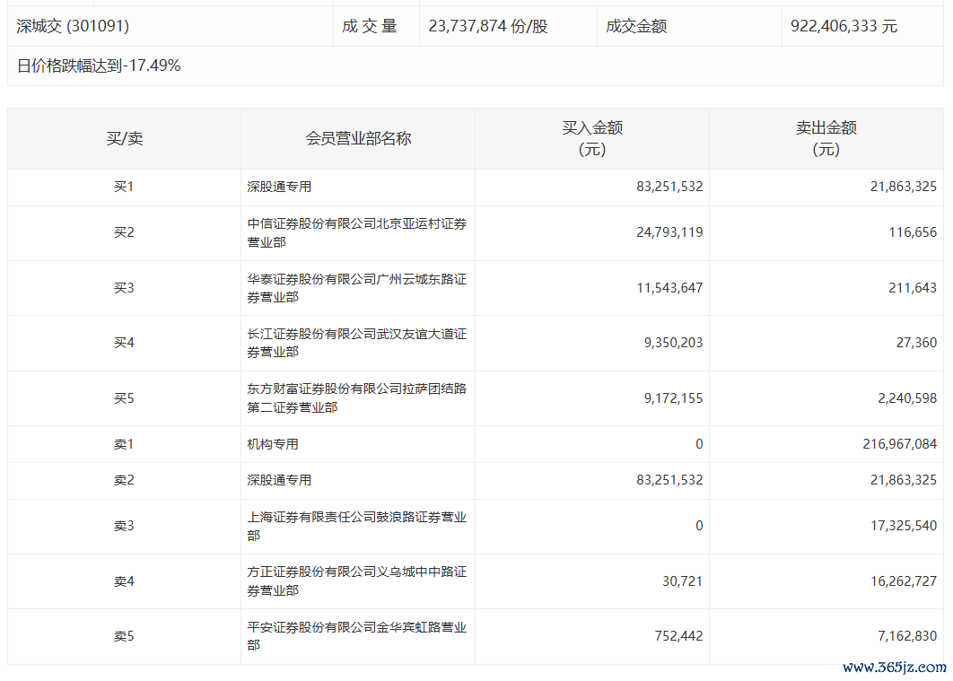 深城交今日跌17.49% 一机构专用席位净卖出2.17亿元股票配资炒股看配资深城交今日跌17.49% 一机构专用席位净卖出2.17亿元