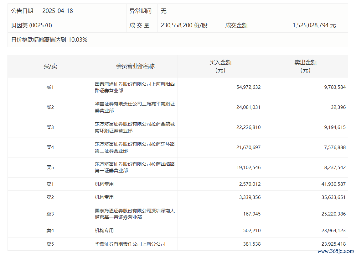 贝因美今日跌停 三机构专用席位净卖出9511.68万元贝因美今日跌停 三机构专用席位净卖出9511.68万元